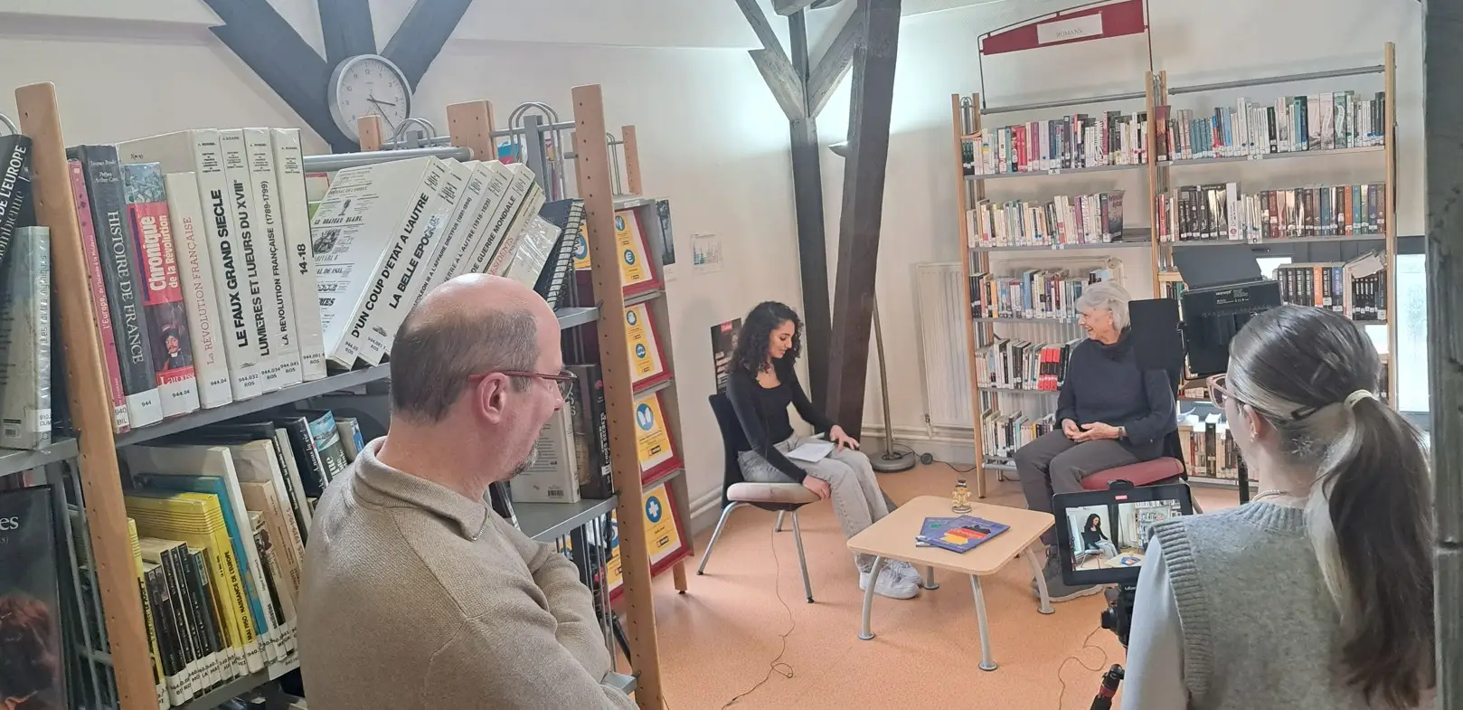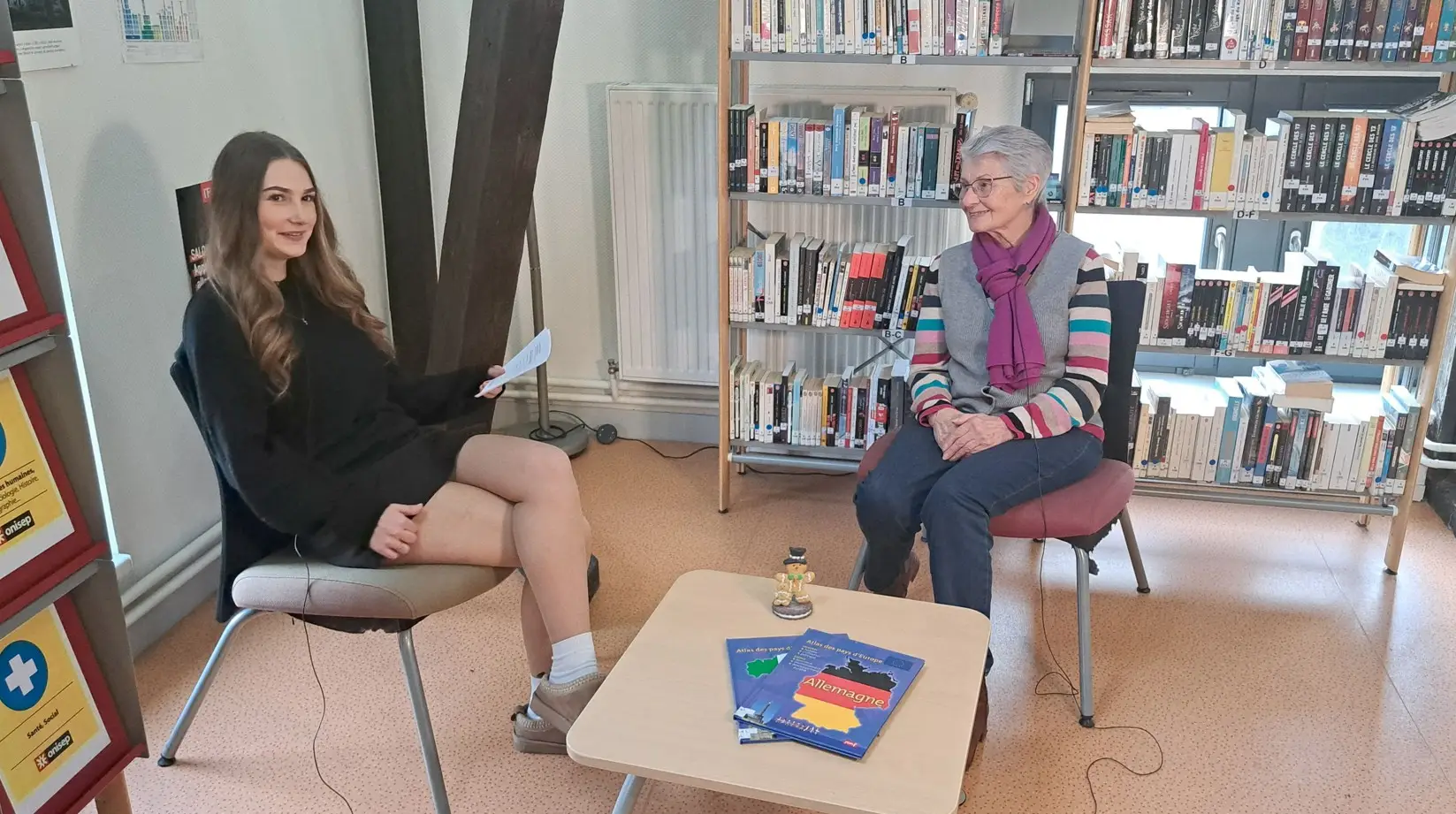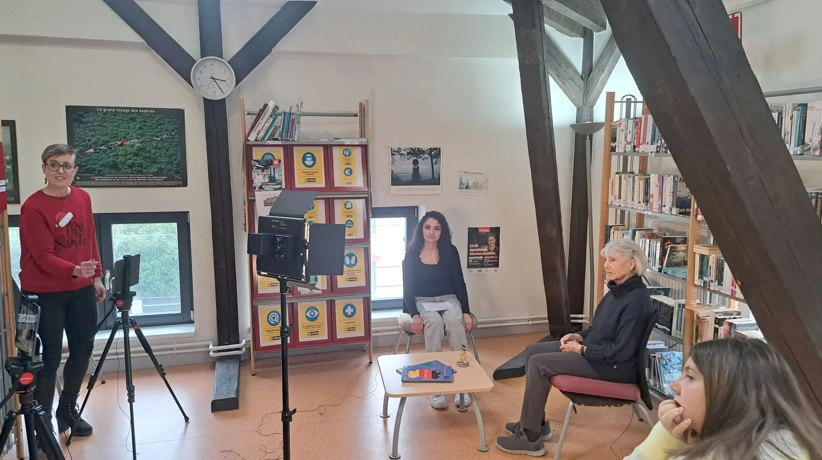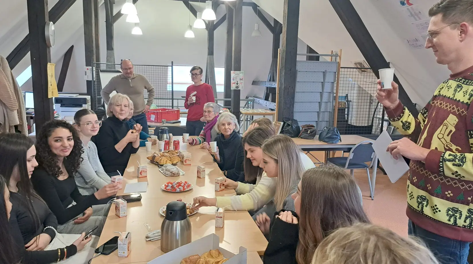 Ce mardi, dans le cadre du projet « comment réussir à bien vieillir ? », les deux dernières interviews de seniors, membres de l’association Europ’age, ont été réalisées par nos élèves. Avec sincérité et enthousiasme, Margareth et Gisela ont répondu aux questions de Leila et Emma, élèves en 1ASSP1 euro. Le projet entre désormais dans la longue phase de montage avec l’équipe de la Web TV . L’objectif final est de présenter les pastilles vidéos lors d’un rassemblement qui se déroulera en octobre 2026. La rencontre s’est terminée par un moment de convivialité, d’échanges et de remerciements à tous les participants de ce projet intergénérationnel.