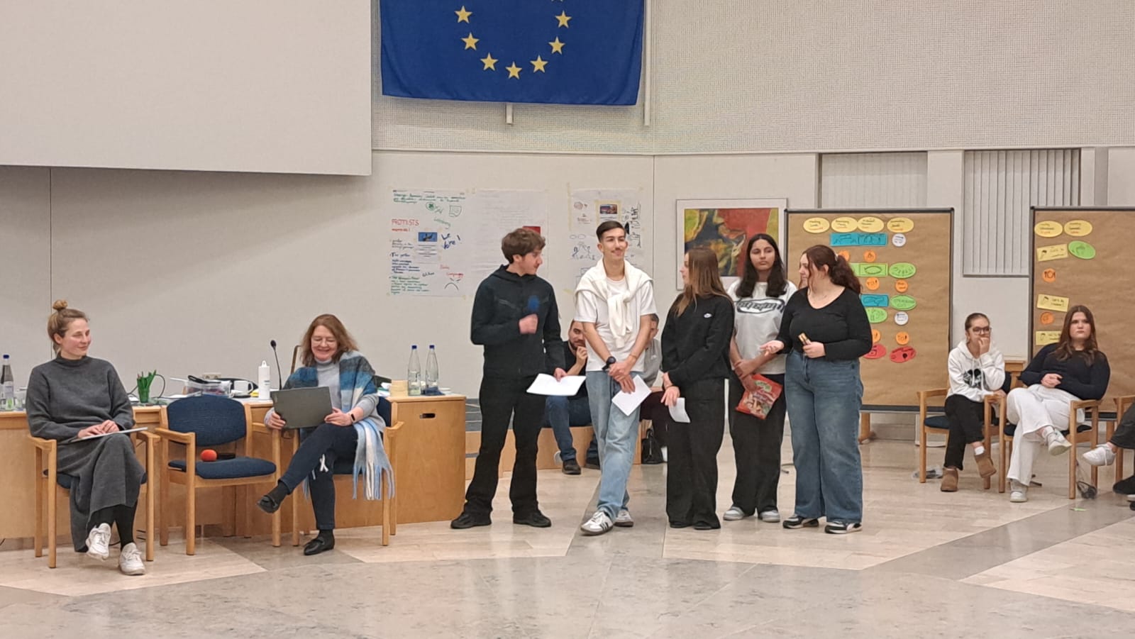 Le séminaire s’est conclu par la réalisation de six productions — dessin/collage, clip vidéo, production écrite, sketch, court-métrage et podcast — autour du thème « L’Europe en 2050 ». Ces travaux ont permis aux élèves de développer des compétences sociales, numériques et linguistiques, contribuant ainsi à leur formation de citoyens éclairés.