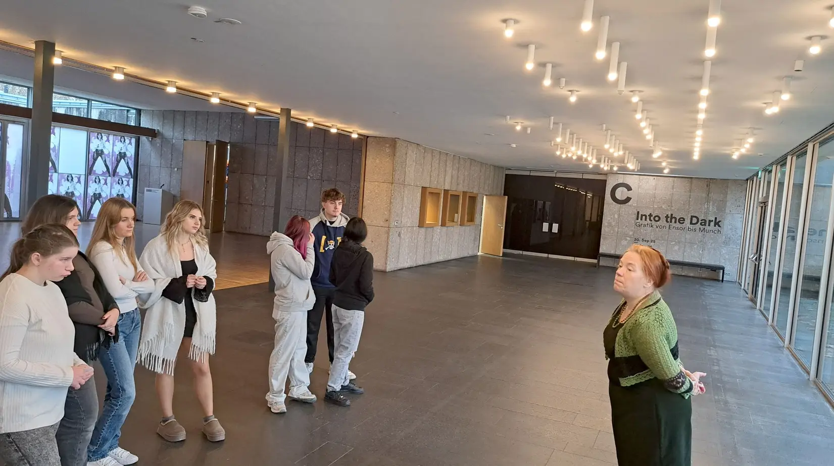 Dès l’arrivée au Saarlandmuseum – Moderne Galerie, les élèves ont découvert l’exposition temporaire « Into the Dark, von Ensor bis Munch ». L’exposition met notamment en lumière une collection exceptionnelle d’œuvres de Munch, présentée pour la première fois dans son intégralité