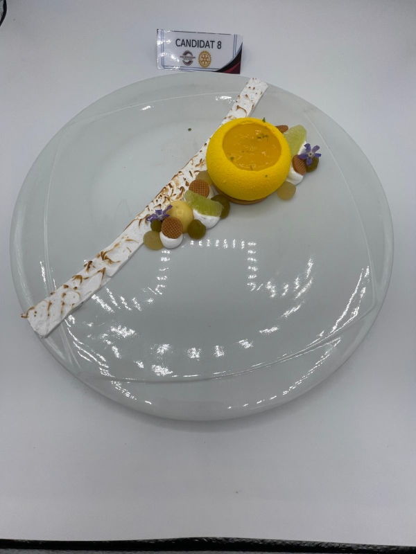 Cette édition a brillamment mis en lumière le Certificat de spécialisation Pâtisserie de boutique. Onze candidats passionnés ont relevé le défi d’une épreuve exigeante, mêlant technicité et imagination, autour d’un panier surprise et d’un thème inspirant : « l’agrume en majesté ». Des créations préparées avec soin dès la veille de l’événement.