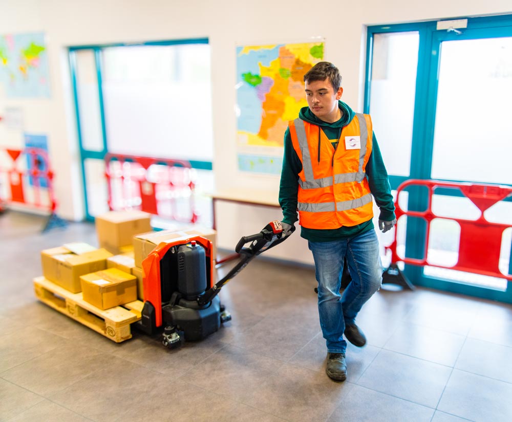 Une formation aux engins à conducteurs accompagnants sur le plateau technique du lycée avec des travaux pratiques des différents pôles (réception – préparation de commandes …)